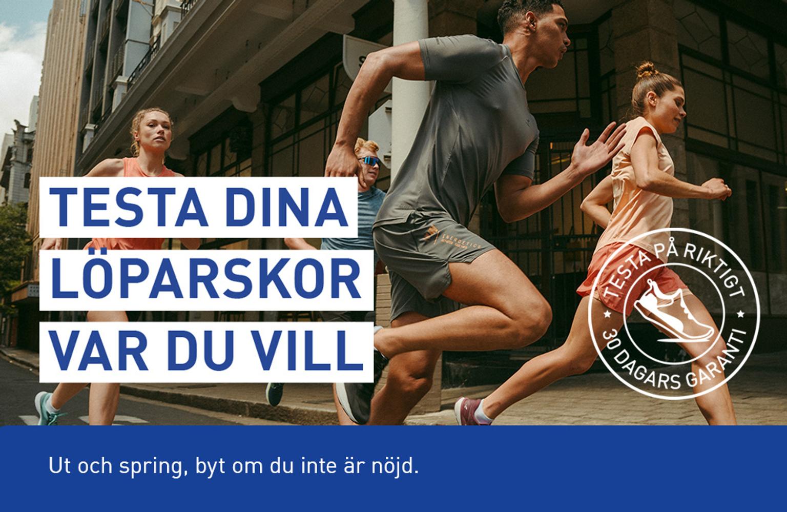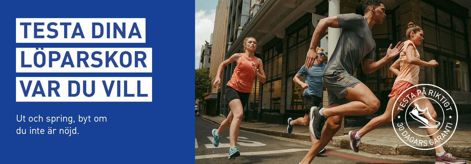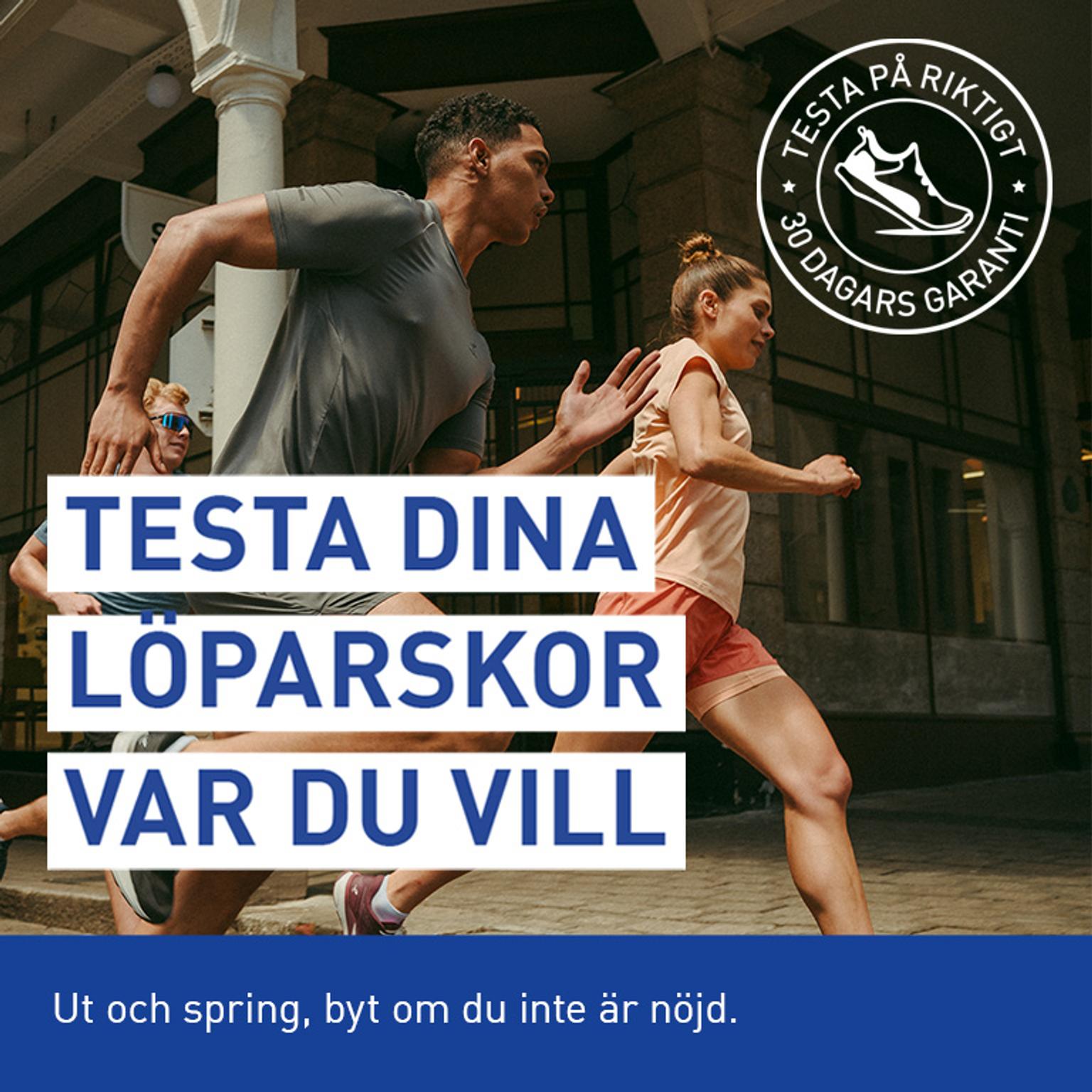 Vi på Intersport har utbildade löparexperter i alla våra butiker. Vi vet också att ett par skor såklart testas bäst i sin rätta miljö. Därför har vi gjort hela världen till ditt provrum med vår ”Testa på riktigt”-garanti*. Vi är nämligen så säkra på att ge dig rätt sko att vi vågar sätta det på prov. Så för att du ska bli lika säker som oss får du testa skorna var du vill i hela 30 dagar. Först därefter bestämmer du dig. Om vi mot förmodan har fel så byter vi dina nya skor oavsett hur mycket du sprungit i dem.